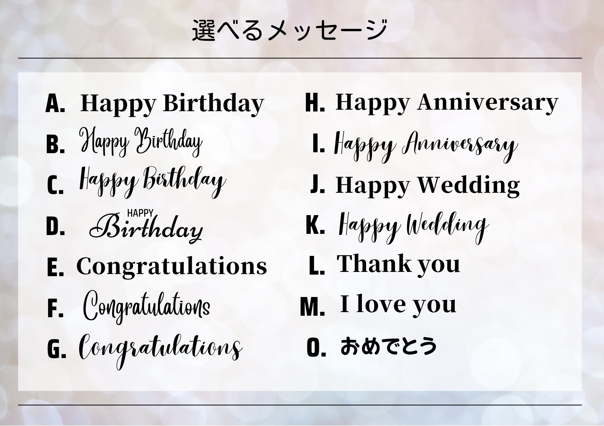 ※文字のフォントはお選びいただけません