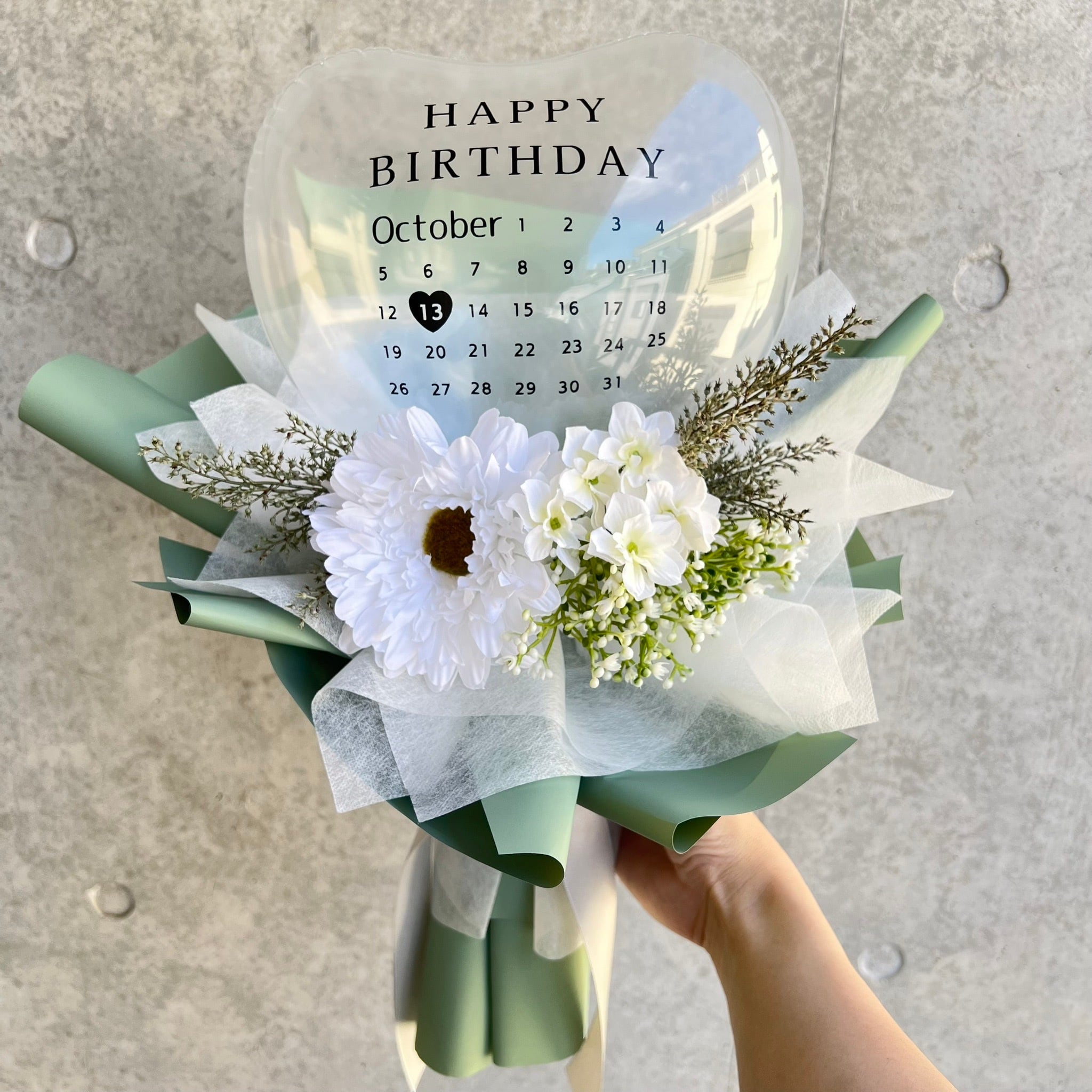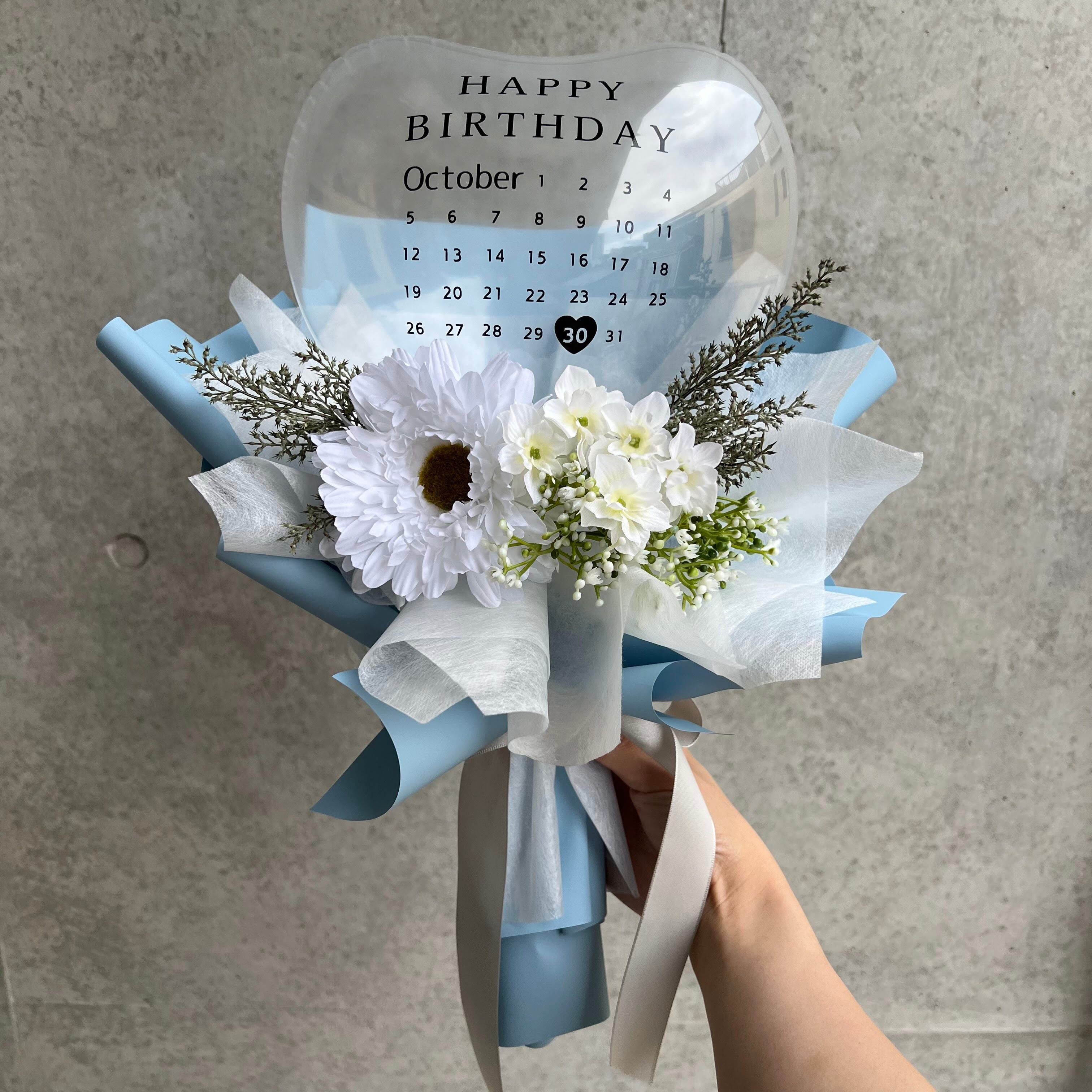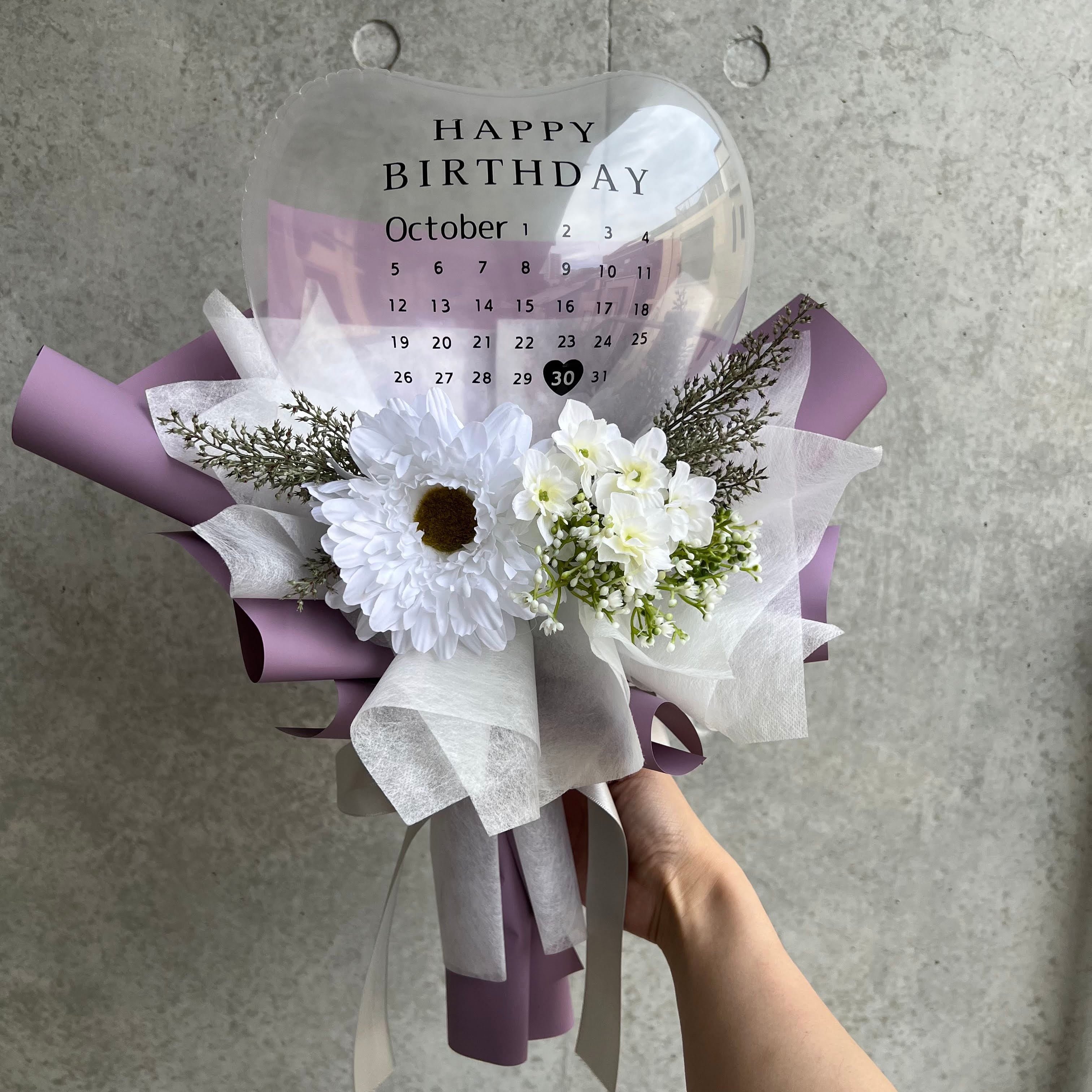 特別な日にぴったりなカレンダーが印字されたバルーンブーケをお届けします♡