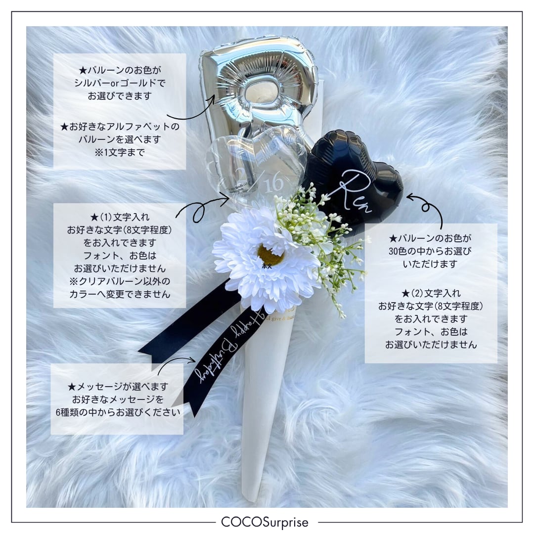 ②文字バルーンとカラー(シルバーorゴールド)をお選びいただけます