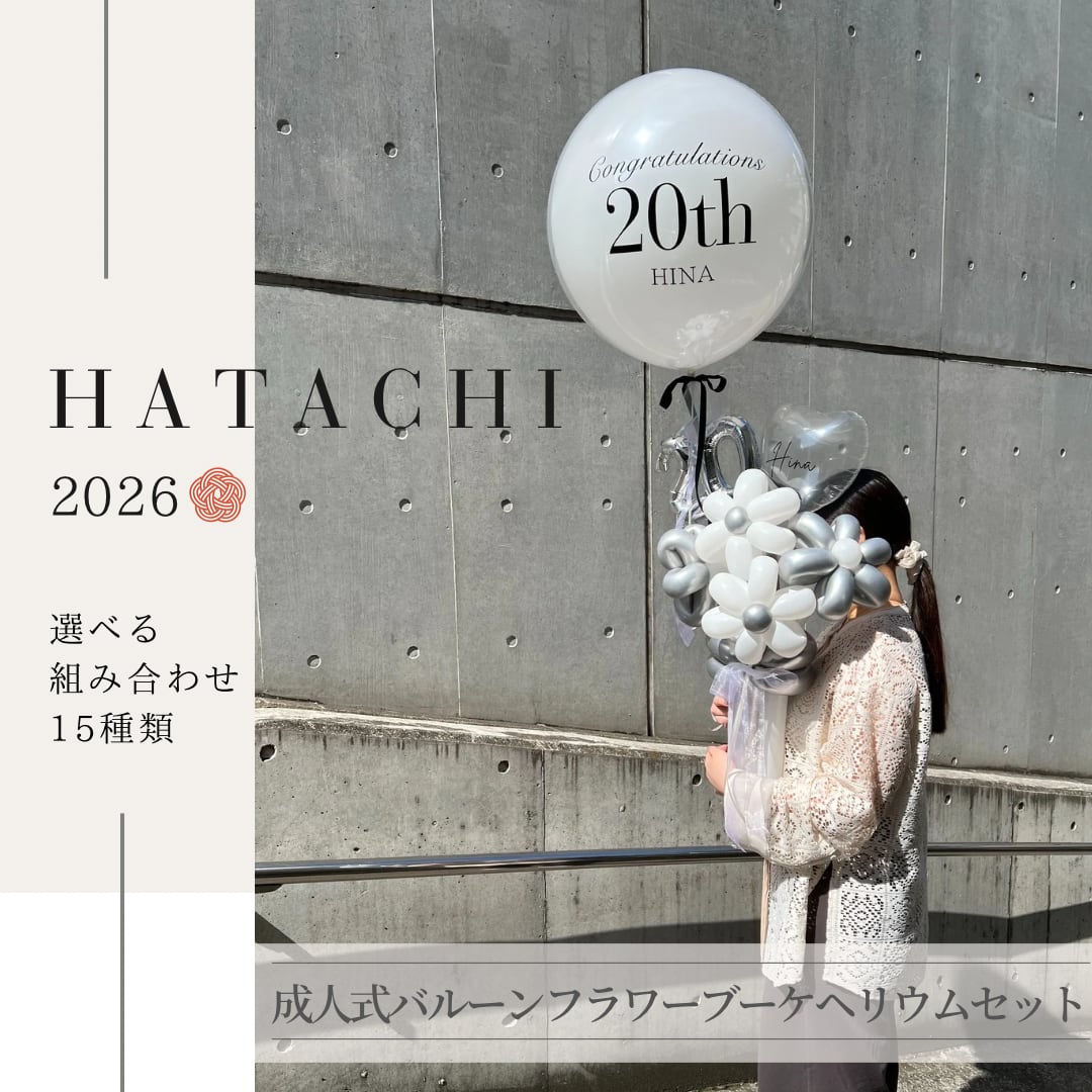 成人式や二十歳のお祝いにぴったりの、特別なヘリウムバルーンセット