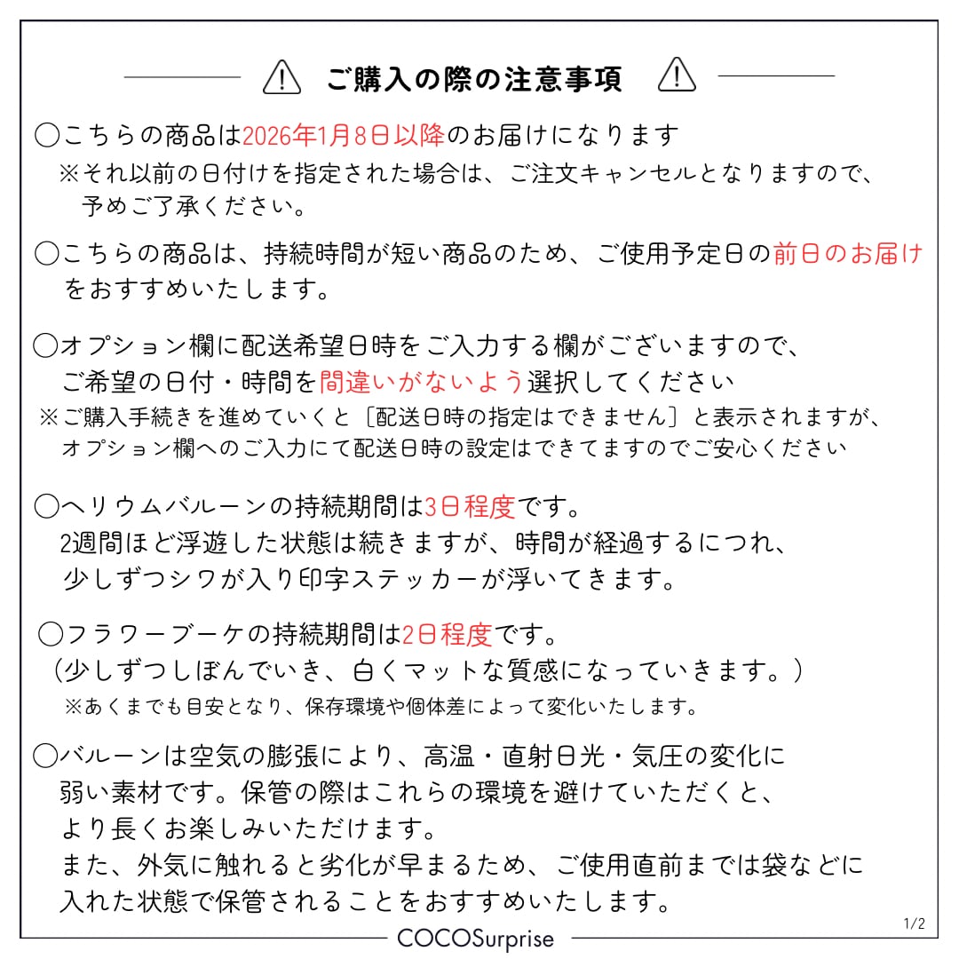 ★持続期間が短い商品のため、ご使用予定日の前日のお届けをおすすめいたします