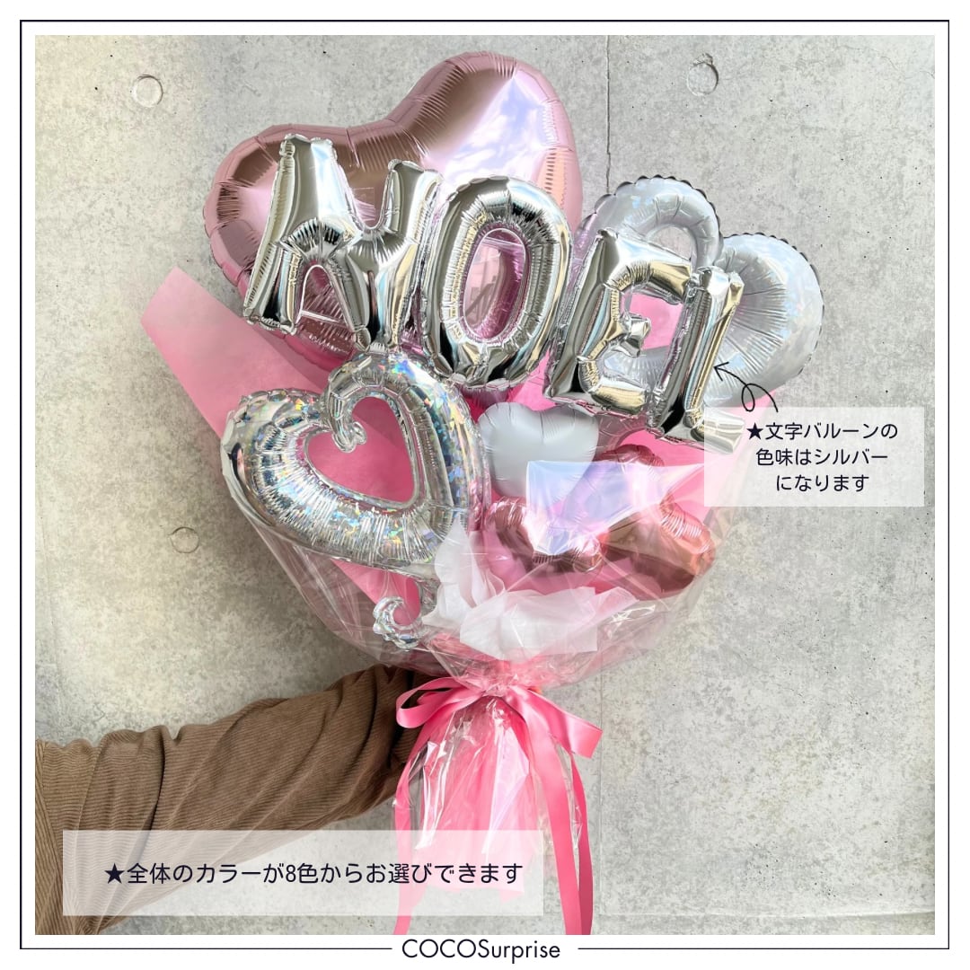 ①バルーンブーケのカラーは8色からお選びいただけます(商品画像3〜10枚目)