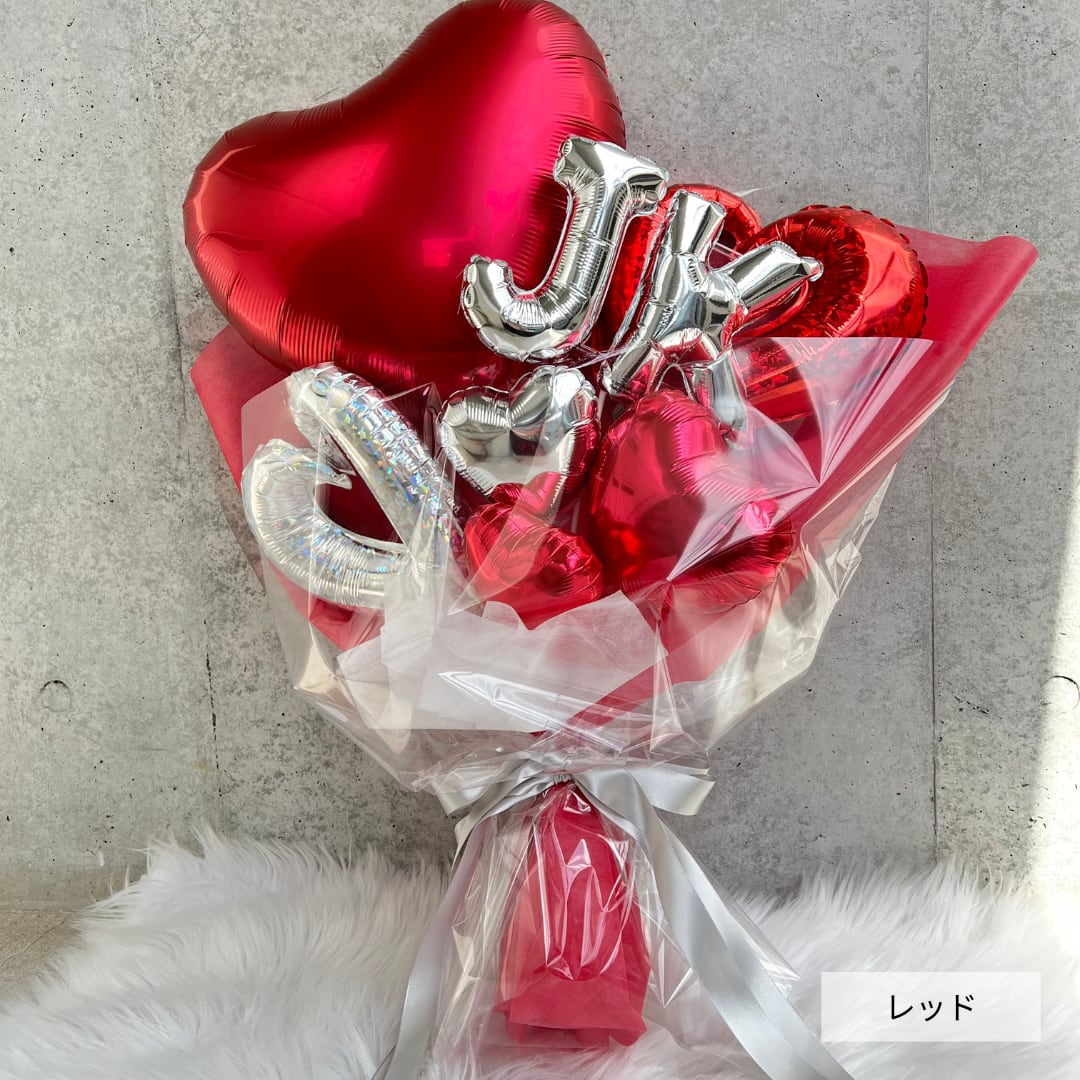 オープンハートが存在感抜群のバルーンブーケにヘリウムバルーンが2個ついたお得なセットです!