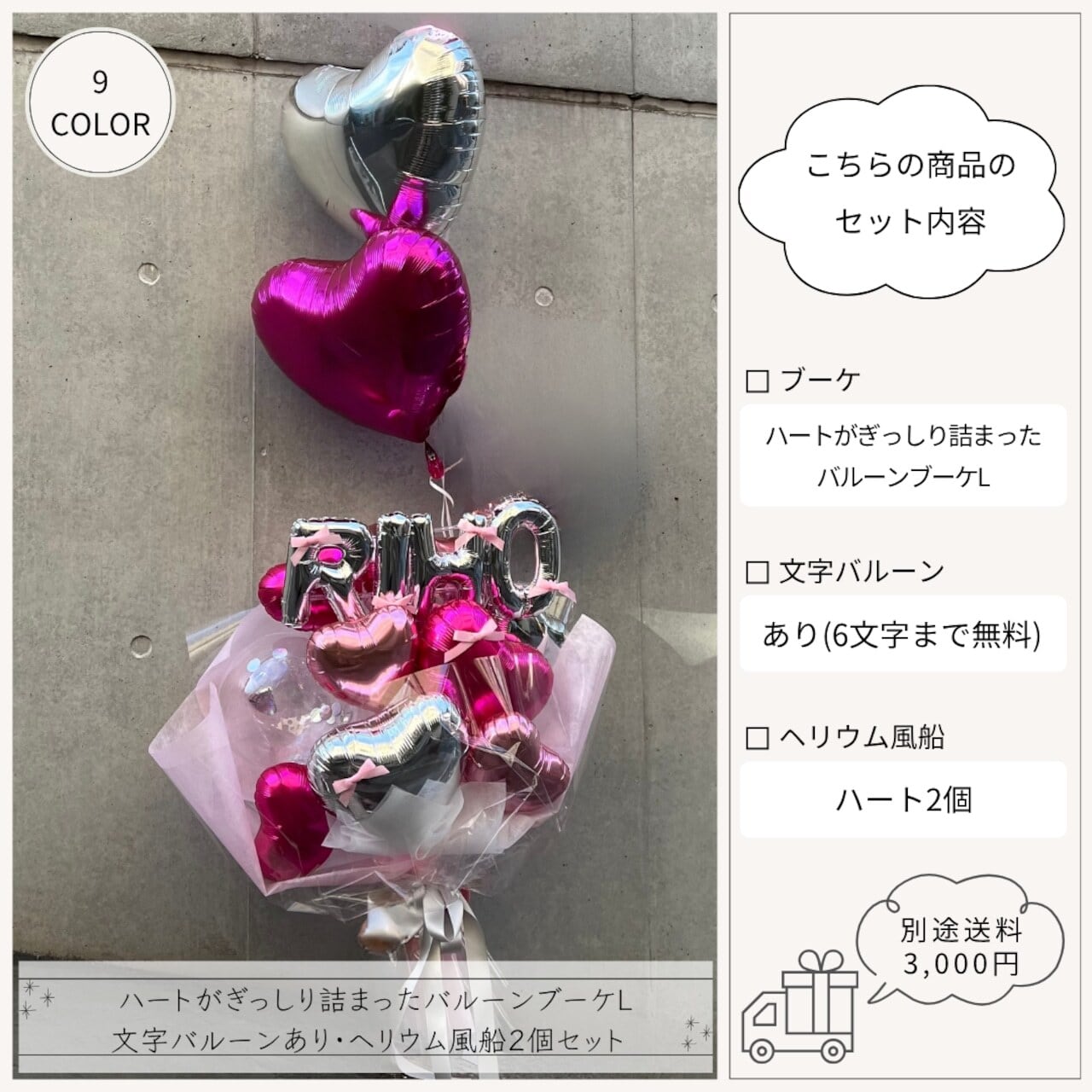 9色のハートがぎっしり詰まったバルーンブーケL(文字バルーンあり、ヘリウム2個セット)