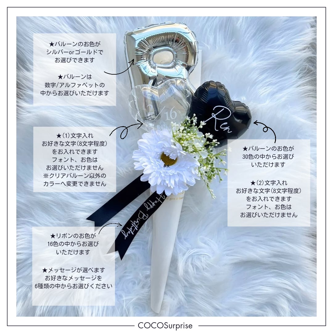 ※ホワイトのバルーンへの文字入れのみ文字色はゴールドになります